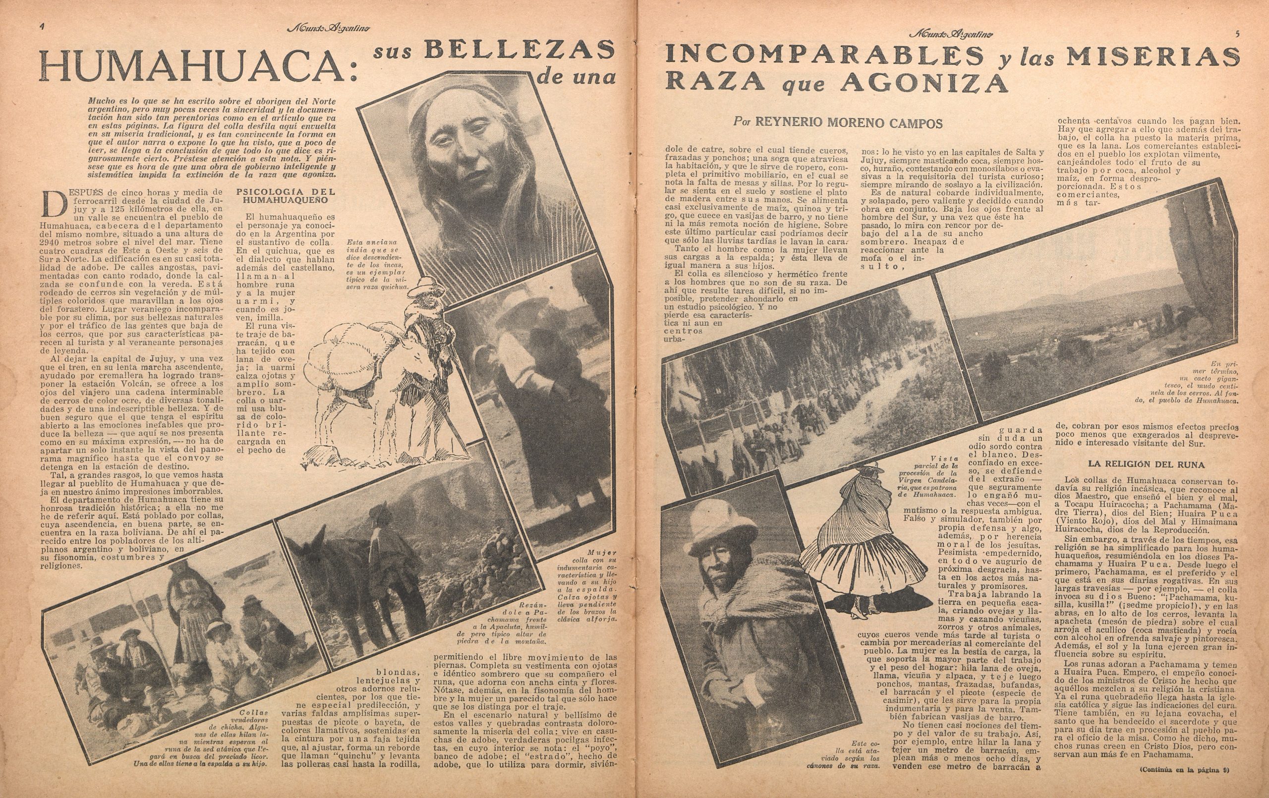[32] Reynerio Moreno Campos, “Humahuaca: sus bellezas incomparables y las miserias de una raza que agoniza”, Mundo argentino, no 1211, 4 de abril de 1934, 17.